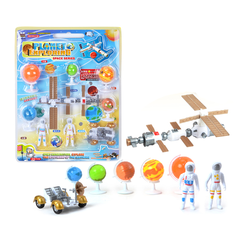 10 piezas en caja 3D modelo educativo de plástico Mini astronauta espacial juguetes para niños